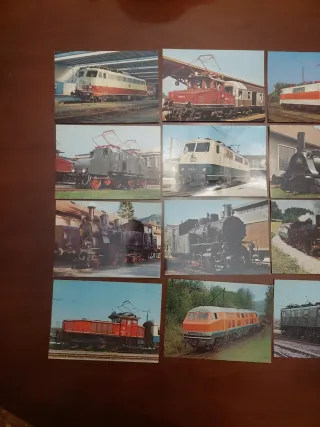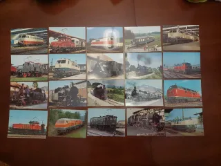 Conjunto de 20 postales vintage con imágenes de diferentes locomotoras y trenes. Algunas están escritas por detrás.