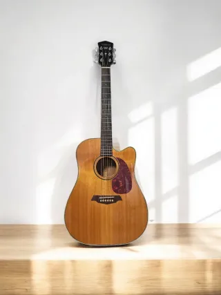 Guitarra acústica clásica de color madera. Con funda - Cuerpo de madera. - Seis cuerdas metálicas. - Diapasón con trastes. Infantil.