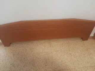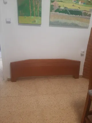 Cabecero de cama con un diseño curvo y líneas horizontales. - Acabado en madera. - Color marrón.