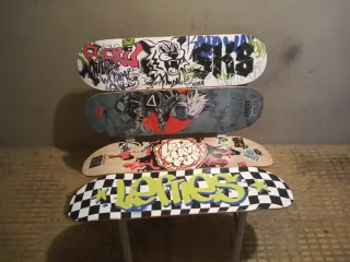 Original silla creada a partir de tablas de skate. - Tablas de skate con diseños variados. - Estructura de metal.
