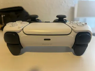 Mando de consola Sony PS5 en color blanco y negro. Diseño ergonómico para una experiencia de juego inmersiva. - Botones frontales con símbolos clásicos. - Sticks analógicos precisos. - Panel táctil central.