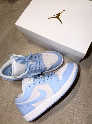 Zapatillas Nike Dunk Low en tonos azul claro y blanco. Un diseño clásico y versátil. - Combinación de ante y piel. - Suela de goma blanca.