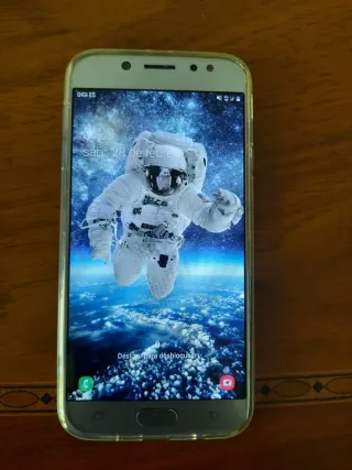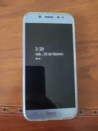 Teléfono móvil Samsung J7 Pro en color plata y blanco. - Pantalla de 5.5 pulgadas. - Cámara trasera de 13 MP. - Cámara frontal de 13 MP. - Batería de 3600 mAh.