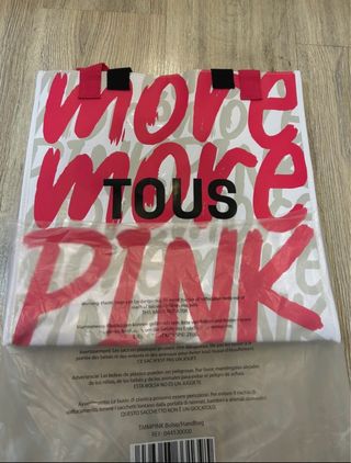 Bolso grande de la marca TOUS. - Diseño more more PINK. - Asas de tela. - Incluye advertencias de seguridad en varios idiomas.