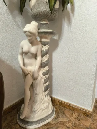 Conjunto decorativo con relieve con figura estilo clásico y maceta. - Figura femenina semidesnuda inspirada en figuras grecorromanas (tipo Venus) de 85cm de altura y 40cm de base - Maceta decorativa a juego con una altura de 34cm y diámetro superior de 0,35cm