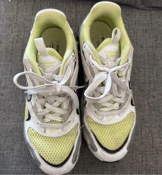 Zapatillas deportivas Nike con un llamativo diseño en amarillo neón y blanco. - Parte superior de malla transpirable. - Detalle de Swoosh en el lateral. - Cordones blancos. - Suela de goma.