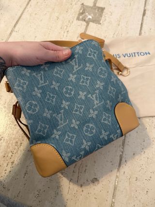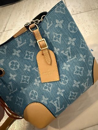Bolso con un llamativo efecto vaquero y detalles en piel. - Diseño con monograma. - Acabados en piel. - Incluye etiqueta de piel. lo compre en una playa en ibiza
