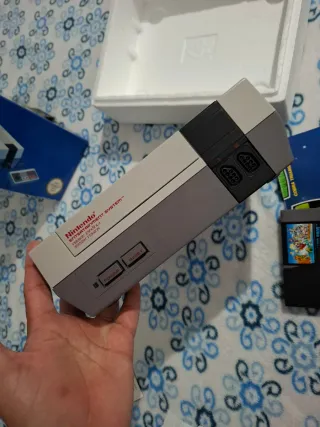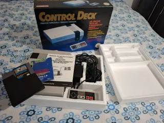 Consola Nintendo Control Deck, versión española. Incluye la caja original, los corchos están en muy buen estado sin roturas y todos sus accesorios. Incluye póster original y manual Pero no coincide con el número de serie de la consola. Consola perfectamente funcional y estéticamente se encuentra muy bien sin golpes. Incluye - Consola Nintendo Control Deck - Mando original - Juego Super Mario Bros. Con marca en la pegatina (ver última foto - Manual de instrucciones - Cables de conexión - Caja original con insertos de poliestireno