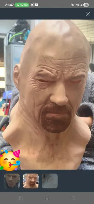 Máscara de disfraz con un diseño muy realista. - Textura detallada de la piel. - Aspecto envejecido.