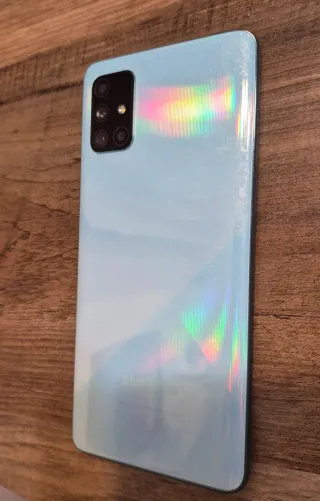 Teléfono móvil Samsung Galaxy A71 en color azul, pantalla grande, en buen estado, siempre se ha utilizado con funda y cristal templado desde el primer día.