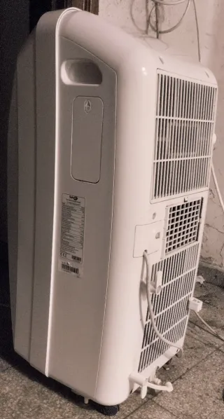 Este aire acondicionado portátil es una solución práctica para mantener tu espacio fresco. - Diseño moderno en color blanco. - Panel de control intuitivo. - Rejillas de ventilación ajustables.