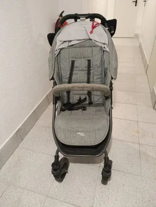 Silla de paseo plegable en color gris, ideal para transportar a los más pequeños de forma cómoda y segura. - Diseño moderno y funcional. - Capota extensible. - Cesta de almacenamiento inferior. - Ruedas giratorias para mayor maniobrabilidad.