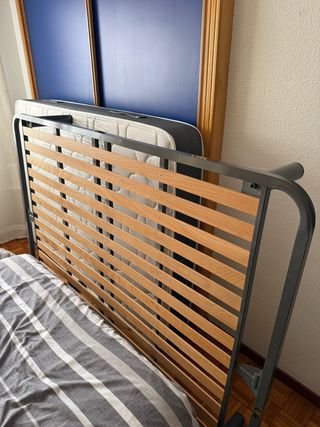 Cama infantil extensible de Ikea, en perfecto estado y casi sin uso. Ideal para habitaciones infantiles. - Estructura de madera clara. - Diseño con cabecero decorado con un dibujo de Cenicienta. - Somier de lamas de madera.
