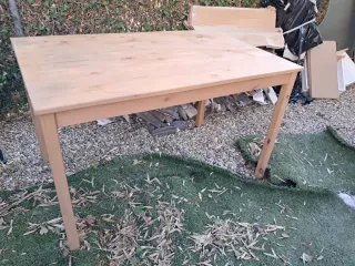 Mesa con un diseño moderno y funcional. Sus patas se desmontan fácilmente para un transporte y almacenamiento más cómodo. - Patas desmontables. - Acabado en tonos beige y blanco