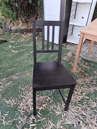 Conjunto de mesa y cuatro sillas de madera, ideal para comedor o cocina. - Mesa de madera - Cuatro sillas de madera de color negro