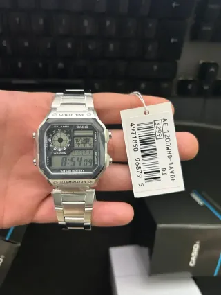 Reloj Casio modelo AE-1200WHD-1AVDF con correa de acero inoxidable. - Resistente al agua WR100M. - Batería de 10 años. - Iluminador para visibilidad nocturna.