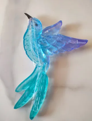 Figura decorativa de colibrí hecha a mano con resina epoxi y tinta luminiscente. Bonita decoración para cualquier espacio o hogar. Precioso detalle regalo para alguien especial. Viene con cinta doble cara para pegarlo en sitio deseado . - Diseño detallado. - Acabado brillante.