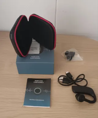 Auricular inalámbrico, completamente nuevo. - Incluye funda de transporte. - Incluye cable de carga USB. - Incluye manual de instrucciones. - Incluye almohadillas de repuesto.