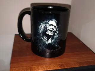 Tazas negras,blancas y transparentes con diseño. - Muestra un retrato artístico de Robe con texto de fondo. - precio unidad