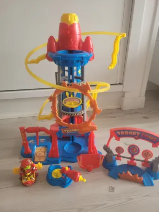 Set de juego Superthings Torre de Entrenamiento. - Incluye la torre principal con rampas. - Incluye zona de entrenamiento. - Incluye zona de tiro al blanco. - Incluye figura de Superthing y lanzador. Con la opción de añadir personajes de superthings