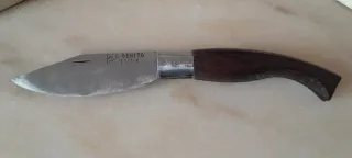 Navaja clásica con mango de madera y detalles metálicos. - Hoja de acero inoxidable. - Mango ergonómico de madera oscura. - Detalle metálico en la base del mango.