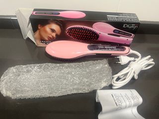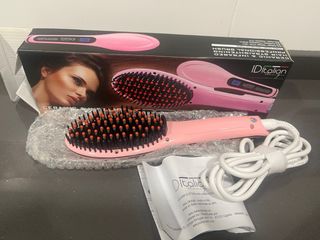 Cepillo alisador de pelo con tecnología cerámica e infrarrojos. - Mango ergonómico en color rosa. - Cable de alimentación blanco.