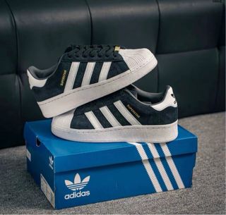 Zapatillas Adidas Superstar con un diseño clásico y atemporal. - Combinación de colores azul y blanco. - Detalle de las tres franjas icónicas de Adidas.