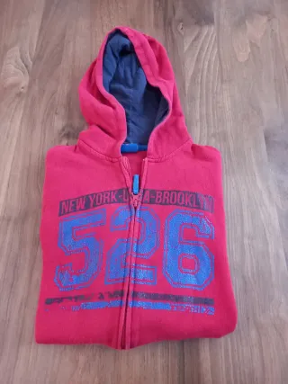 Sudadera con capucha para chico. Marca Tenth Talla 16 - Diseño con estampado de números y texto. - Cierre de cremallera frontal. - Capucha con forro interior. - Bolsillos delanteros Usada, con desgaste normal por uso.