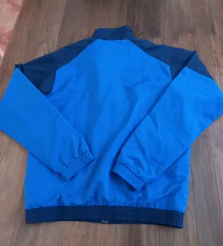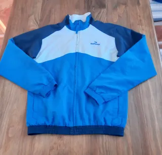 Chaqueta deportiva de chico con diseño moderno y cómodo. - Color azulón, blanco y azul marino. - Cierre de cremallera. - Puños y cintura elásticos. - Talla 14 - Marca Boomerang, de El Corte Inglés Buen estado