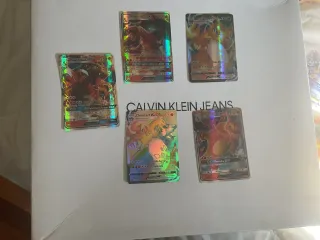 Lote de cartas Pokémon con varios ejemplares de Dracaufeu (Charizard) en sus versiones GX y VMAX.Incluye aparte un Mewtwo en su versión EX(está un poco roto)y el precio del Mewtwo es 650€
