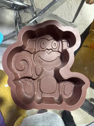 Molde de silicona con forma de mono. - Diseño divertido con cola en espiral. - Ideal para repostería creativa.