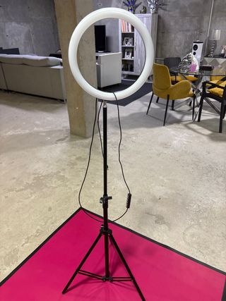 Aro de luz circular ideal para crear contenido o iluminar espacios. - Diámetro del aro: 45 cm. - Soporte tipo trípode ajustable. - Cable de alimentación con control. - Color blanco.