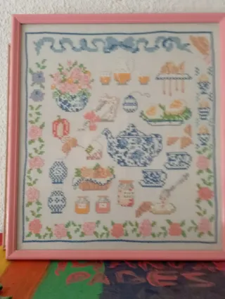 Cuadro punto de cruz cocina flores