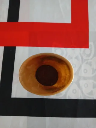 Este mate está hecho de cuerno de vaca, con un diseño único y natural. - Material: Cuerno de vaca. - Tonos: Beige y marrón.