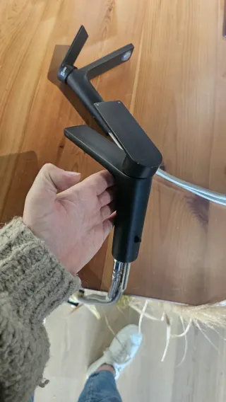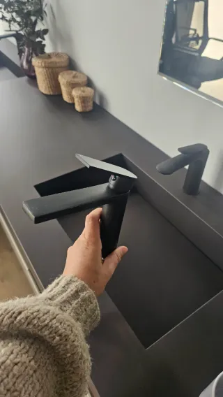 Conjunto de dos grifos de diseño moderno, sin usar y en perfecto estado. Precio 45€ la unidad - Acabado negro mate. - Incluye fijaciones y manguitos