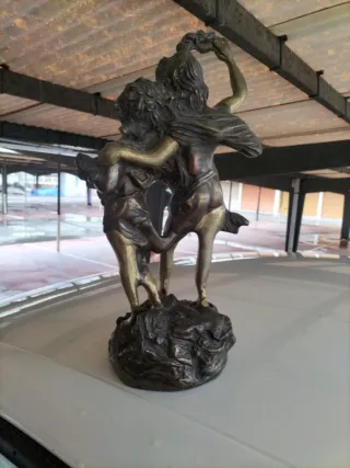 Estatua decorativa de bronce con dos figuras entrelazadas. - Material: Bronce. - Diseño artístico. - Base detallada.