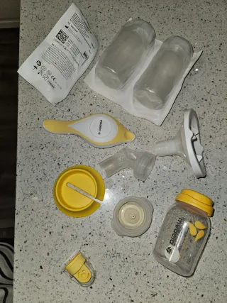 Sacaleches manual Medela Harmony, diseñado para ser ligero y portátil. Incluyo de regalo 6 botes de 150ml marca Medela, para almacenaje y congelación de la leche, en su bolsa original. Nuevos. - Extractor de leche manual. - Ligero y portátil. - Diseñado para la extracción de pequeñas tomas o el vacíado del pecho. -Muy poco uso. -Esterilizado