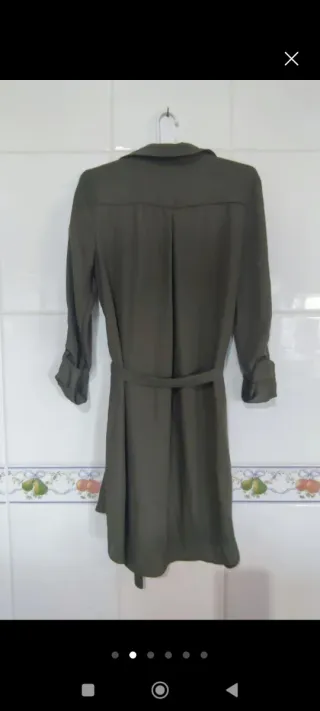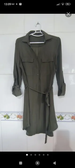 Vestido camisero de manga larga con cinturón. - Dos bolsillos en el pecho. - Cierre de botones. - Puños enrollables.