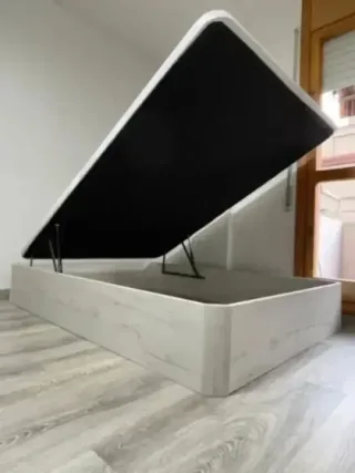 Canapé abatible con apertura fácil y segura mediante pistones hidráulicos. Amplio espacio bajo el colchón ideal para guardar ropa de cama, almohadas, maletas y más. Interior reforzado para soportar cargas pesadas sin deformarse.