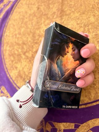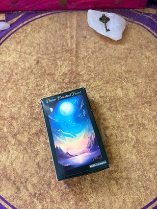 Mazo de tarot Divine Celestial Tarot con 78 cartas, en inglés. Es una baraja completa de 78 cartas con un diseño visual impresionante, lleno de colores vibrantes, paisajes oníricos y una temática cósmica/celestial muy especial. • Estado de las cartas: Nuevas • Estado de la caja: Con señales de uso (ver fotos), pero cumple perfectamente su función de protección Contenido: 78 cartas (Arcanos Mayores y Menores). • Estilo: Arte digital de alta calidad, muy intuitivo para lecturas terapéuticas o de introspección. #tarot #cartastarot #esoterismo #espiritualidad #videncia #oraculo #magia #coleccionismo #artedigital #divinecelestial