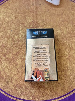 Vendo el prestigioso Tarot Nefertari, una de las barajas más bellas de la editorial italiana Lo Scarabeo. Esta edición destaca por sus impresionantes ilustraciones con fondos en pan de oro que brillan con la luz, dándole un aspecto real y místico. • Estado de las cartas: Nuevas • Acabado: Impresión de alta calidad con relieves dorados. • Incluye: Mazo completo de 78 cartas y libreto de instrucciones original. • Idioma: Cartas y manual en varios idiomas (incluye español). • Temática: Basado en la estética del arte egipcio y la figura de la reina Nefertari, la esposa de Ramsés. Es un mazo ideal tanto para lectura profesional