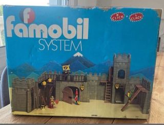 Castillo medieval Famobil System, referencia 3446. Se encuentra en buen estado, en su caja original y instrucciones. - Incluye todas las piezas que se muestran en las imágenes de la caja (tan solo falta 4 embellecedores que no afectan a la construccion y montaje, se compensa con 4 caballos que incluyo que no vienen de origen) - Ideal para coleccionistas.