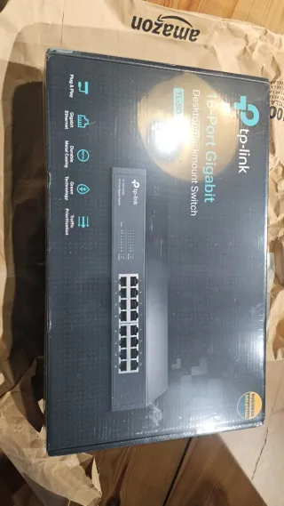 Switch de red TP-Link de 16 puertos Gigabit. Nuevo sin abrir. - Modelo: TL-SG1016D - Diseño para escritorio o montaje en rack. - Puertos Gigabit Ethernet. - Carcasa metálica duradera. - Tecnología Green para ahorro de energía. - Priorización de tráfico (QoS).