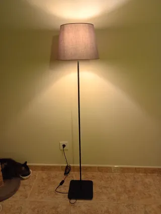 Lámpara de pie Hemma de Ikea con pantalla. - Pantalla de tela. - Estructura metálica.