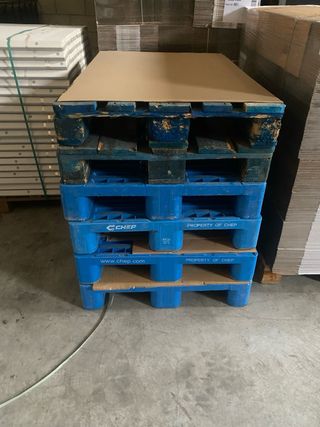 Palets europeos de madera en color azul, diseñados para ser resistentes y duraderos. - Construcción robusta. - Acabado en pintura azul. - (15€ la unidad)