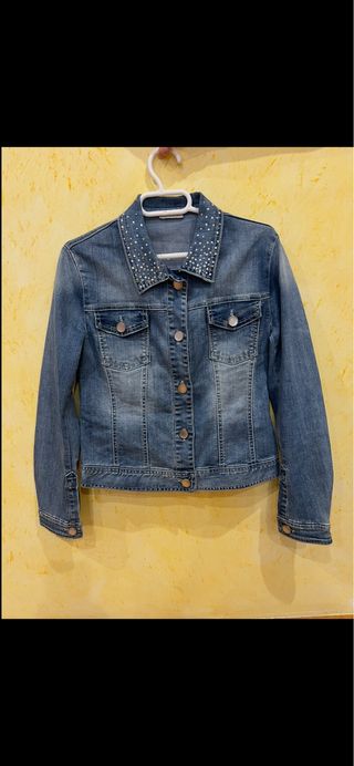 Cazadora vaquera de la marca Elsy Girl. - Diseño con tachuelas en el cuello. - Cierre de botones metálicos. - Dos bolsillos en el pecho con solapa y botón.