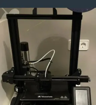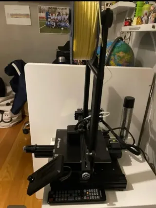 Impresora 3D de color negro. - Marca Voxelab. - Diseño moderno y compacto. -Se regala filamento amarillo y laca