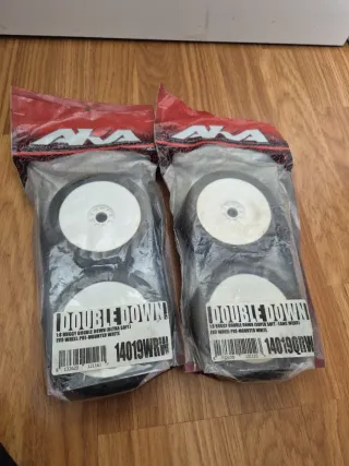 Juego de 4 ruedas para buggy 1/8. - Modelo: Double Down (Ultra Soft). - Código: 14019WRW. - Marca: AKA. - Color de la llanta: Blanco. Mas ruedas en mi perfil No leer: mugen seiki xray tekno rc radiocontrol electrónica ebuggy mayako sworkz futaba sanwa 8r xray tekno