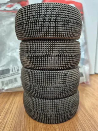 Set de cuatro ruedas para radiocontrol. Diseñadas con un patrón de tacos para un buen agarre. - Cuatro ruedas incluidas. - Patrón de tacos cuadriculados. -Aka zipps ultra soft solo probadas, Mas ruedas en mi perfil No leer: mugen seiki xray tekno rc radiocontrol electrónica ebuggy mayako sworkz futaba sanwa 8r xray tekno