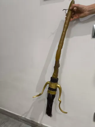 Réplica de la escoba de Harry Potter, ideal para niños amantes de la saga. Fabricada en plástico, hecha para durar. - Diseño inspirado en la saga. - Detalles dorados y acabado en madera. - Incluye soporte para colgar.